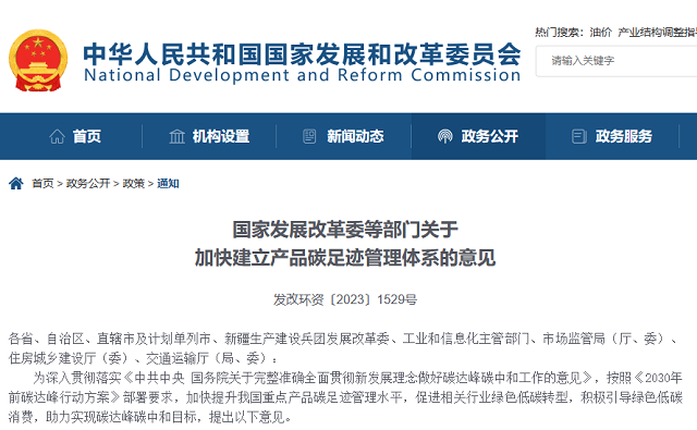 國家發(fā)改委加快建設產(chǎn)品碳足跡