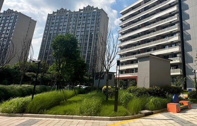 項目還采用分散設置的下凹綠地、雨水花園,消納周邊雨水,并應用淺層調蓄設施,構建雨水快速導入、自然凈化、復合利用的海綿系統。