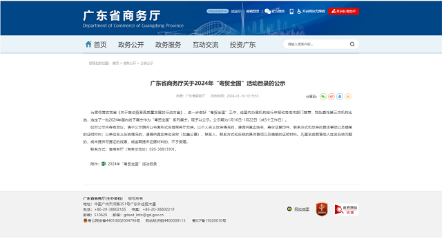 廣東省商務(wù)廳關(guān)于2024年“粵貿全國”活動(dòng)目錄的公示