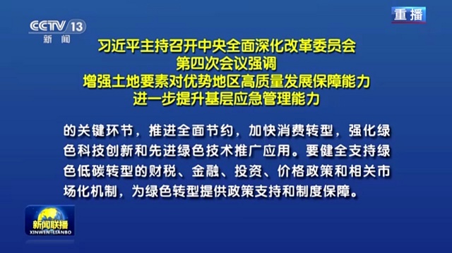 2月19日下午,中共中央總書(shū)記、國家主席、中央軍委主席、中央全面深化改革委員會(huì )主任習近平主持召開(kāi)中央全面深化改革委員會(huì )第四次會(huì )議,審議通過(guò)了《關(guān)于促進(jìn)經(jīng)濟社會(huì )發(fā)展全面綠色轉型的意見(jiàn)》等重要文件。