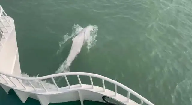 隨著(zhù)海洋生態(tài)環(huán)境質(zhì)量的改善,中華白海豚也在廈門(mén)海域頻繁出現。