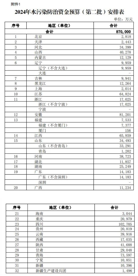 財政部關(guān)于下達2024年水污染防治資金預算(第二批)的通知