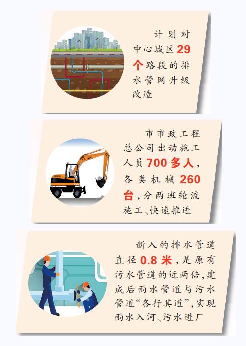 一個(gè)個(gè)項目相繼完工,深埋于城市地下的“毛細血管”逐漸發(fā)達。目前,我市已完成七一路(車(chē)站路至文化路段)、建設路(人民路至明山路段)等8個(gè)路段的排水防澇施工改造。正在對北京大道、武侯路、工業(yè)路、車(chē)站路等13個(gè)路段進(jìn)行施工,這13個(gè)路段全部為雨污水未分流路段。通過(guò)本次施工改造,將進(jìn)一步優(yōu)化排水系統,有效提升中心城區排水防澇能力,減輕雨天污水處理廠(chǎng)壓力。