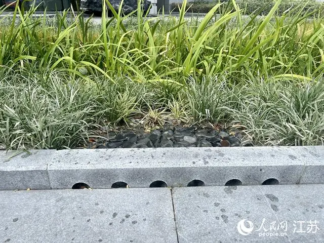 一處雨水花園內,圍住花園的路緣石上,開(kāi)了6個(gè)圓孔??此破胀ǖ脑O計,卻可以使雨水快速導入花園中,這是讓“海綿”吸飽水的第一步。
