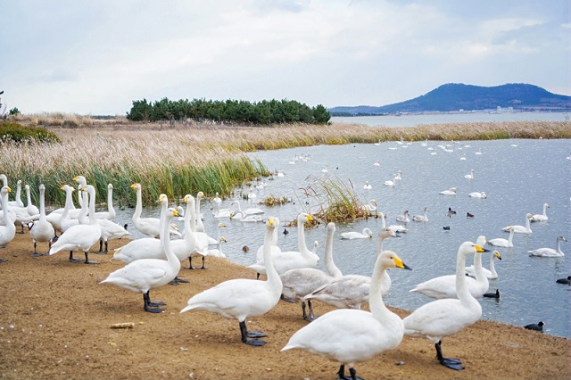 然而,每年的秋冬時(shí)節,成群結隊的天鵝卻選擇在這片看似缺水的土地上棲息繁衍,榮成櫻花湖因此被譽(yù)為“城市中的天鵝湖”,吸引了大量游客前來(lái)觀(guān)賞。
