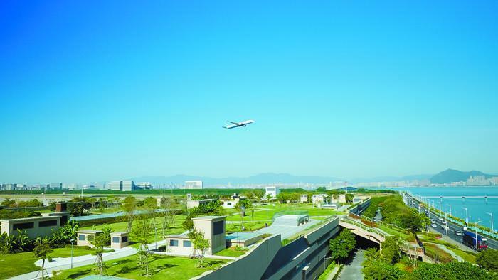 高崎水質(zhì)凈化廠(chǎng)位于廈門(mén)本島高崎機場(chǎng)以南,通過(guò)半地下集約式的建設形式,上層建設屋頂花園、中間層設為運營(yíng)維護空間、地下層布置污水污泥處理構筑物和管道,將城市景觀(guān)、運營(yíng)維護、污水處理三大功能上下疊合,從空間上高效利用土地資源,實(shí)現20萬(wàn)噸/日的處理規模。同時(shí),為廈門(mén)本島高崎機場(chǎng)T4航站樓的開(kāi)發(fā)預留景觀(guān)延伸帶,將稀缺景觀(guān)資源帶給市民,構建了“人水和諧”的全新生態(tài)空間。
