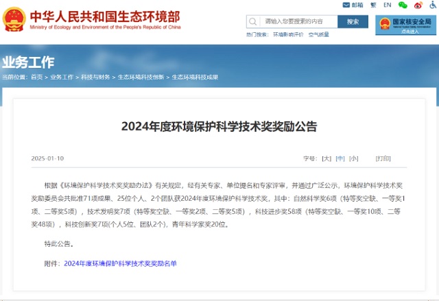 環(huán)境保護科學(xué)技術(shù)獎 該獎項是由生態(tài)環(huán)境部主管的國家環(huán)保領(lǐng)域最高獎項,旨在獎勵在環(huán)境保護科學(xué)技術(shù)活動(dòng)中做出突出貢獻的單位和個(gè)人,調動(dòng)廣大環(huán)??茖W(xué)技術(shù)工作者的積極性和創(chuàng )造性,促進(jìn)環(huán)??萍际聵I(yè)發(fā)展,其科學(xué)性、公正性和權威性得到社會(huì )各界的廣泛重視和支持。