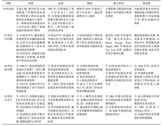 表1主要發(fā)達國家供水系統的發(fā)展歷史