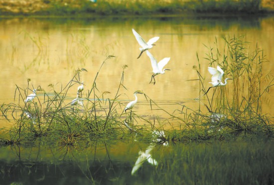 劉立國是一名攝影愛(ài)好者,總是將鏡頭對準家鄉的河。以前,泃河多半年斷流,水少的季節,鳥(niǎo)也不愛(ài)來(lái),隻能拍攝河邊的花草和建筑。前幾年河裡有了水,泃、洳兩河交匯處常有鳥(niǎo)友蹲守,有從城裡來(lái)的,也有從周邊來(lái)的,他就曾目睹上百隻白鷺傍晚翔集。
