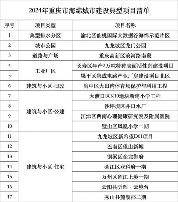 海綿城市是城市綠色發(fā)展的生態(tài)名片,海綿設施讓城市建設不僅有“面子”,更有“韌性”。近日,重慶市住房城鄉建委在總結各區縣海綿城市建設項目?jì)?yōu)秀做法基礎上,選取了17個(gè)不同類(lèi)型、不同做法的項目,形成2024年重慶市海綿城市建設典型項目清單。