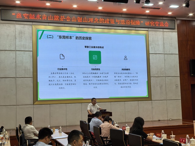 今年是綠水青山就是金山銀山理念提出20周年。近日,由西南政法大學(xué)、生態(tài)環(huán)境部環(huán)境與經(jīng)濟政策研究中心主辦的“落實(shí)綠水青山就是金山銀山理念的政策與法治保障”研究交流會(huì )在重慶市舉行。會(huì )上,廣東省東莞市生態(tài)環(huán)境局黨組成員、副局長(cháng)王鑫以《小切口、小快靈:東莞市零散工業(yè)廢水管理的立法創(chuàng )新》為題作主題發(fā)言,向與會(huì )專(zhuān)家學(xué)者分享東莞市零散工業(yè)廢水管理的法治經(jīng)驗。
