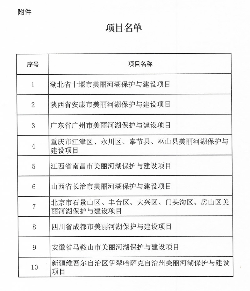 獲得中央財政支持的10個(gè)美麗河湖保護與建設項目分別為:
