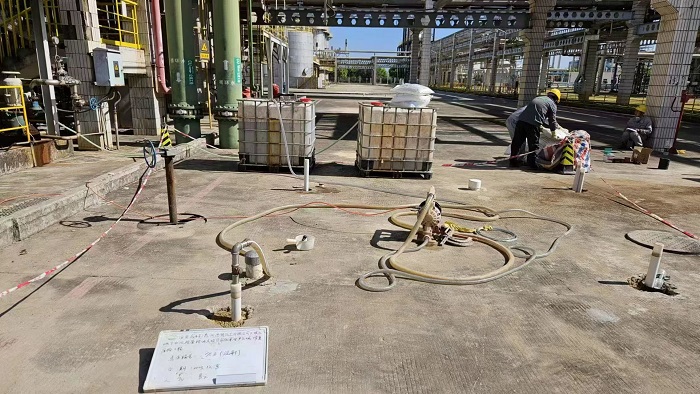 一套防腐防滲“全壽命周期管理”制度。開(kāi)展綠色化改造時(shí),為解決惠州大亞灣海邊高濕高鹽晝夜溫差大等氣候條件導致的涂層壽命短、防腐防滲作用失效快等問(wèn)題,企業(yè)探索選用更耐用、機械性能更優(yōu)的環(huán)氧樹(shù)脂(E-44)涂料,替代原先使用的乙烯基玻璃鱗片涂料作為防腐防滲涂層。同時(shí)將涂層巡查、壽命記錄與定期維護納入日常管理,確保了企業(yè)防腐防滲涂層在其壽命周期內持久有效,鞏固源頭“堵”的效果。