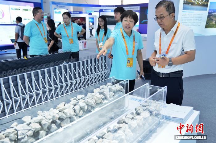 9月11日,在北京舉行的2025年服貿會(huì )北京水務(wù)科技創(chuàng )新展區,觀(guān)眾了解堆石混凝土壩構造模型。據了解,該展區總面積超800平方米,設置濱水空間、數智水務(wù)、健康水業(yè)及水利水電工程建設四大板塊,集中展示北京水務(wù)在科技領(lǐng)域的技術(shù)突破與示范應用。中新社記者張祥毅攝
