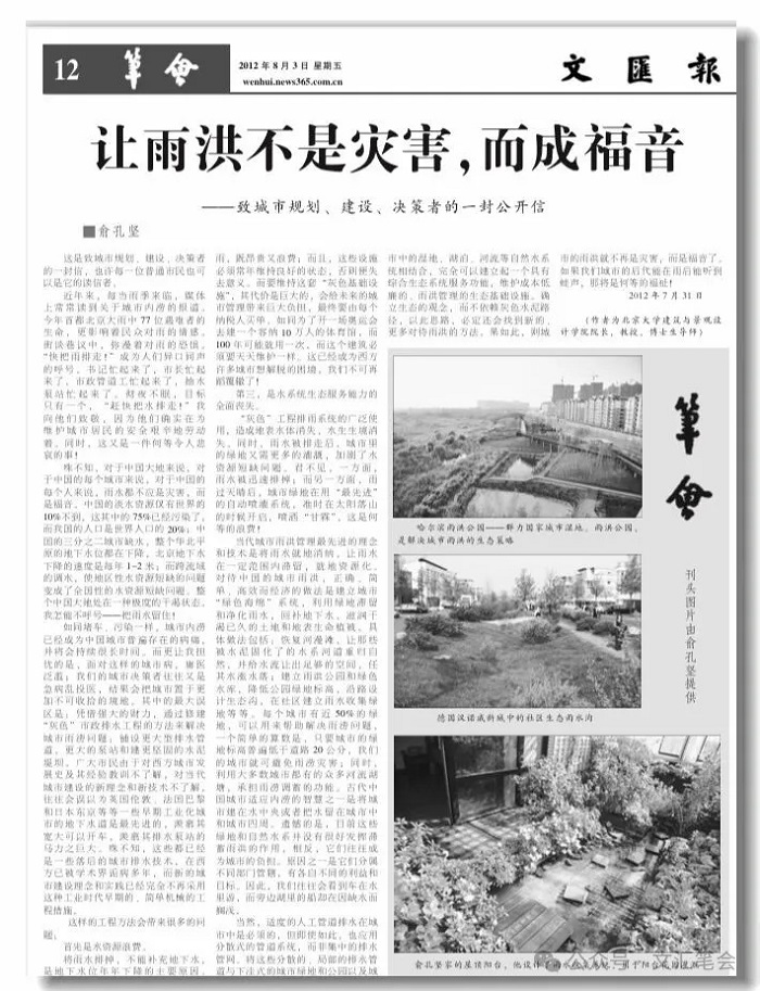 【逝者】俞孔堅:讓雨洪不是災害,而成福音——致城市規劃、建設、決策者的一封公開(kāi)信